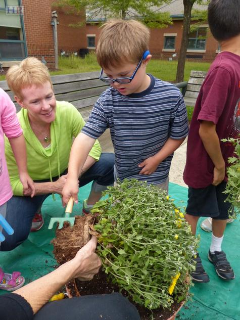 Miller and Placentino student gardeners were once again busy planting fall flowers for the entrances of their schools. This time the plants of choice were mums! The mums were planted in flower boxes and large vases that grace the front doors of the schools. These student gardeners carefully removed the former plants, dug new holes, and planted the mums. These gardeners will continue to care for these plants throughout the fall.