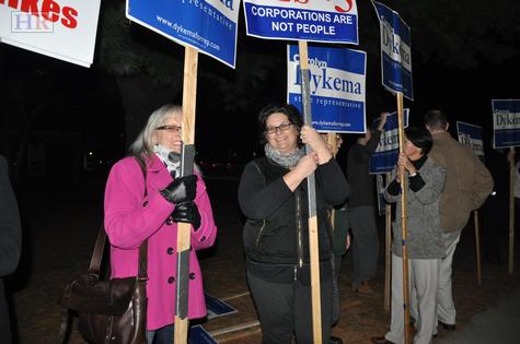 Outside residents face the gauntlet of political advocates. Election day is one week away.