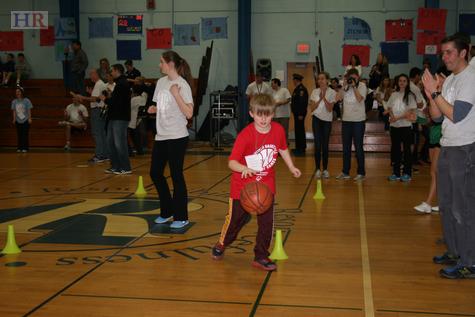 Maddie Bloecher participating in the inaugural 5 Town Special Olympics basketball event at Medfield.
