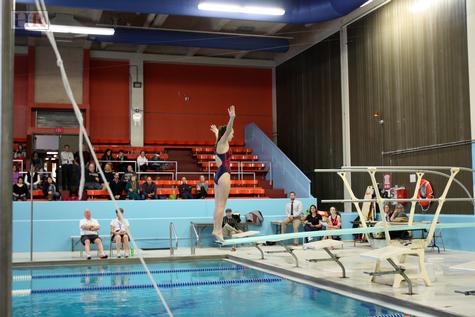 Jackie Dunne of Medway is ready for a half twist dive.