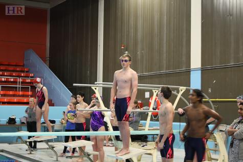 What has contributed to this fantastic record is the ability to place swimmers in a variety of events. The team does not have to rely on just a few individuals time and again. All of the swimmers are willing to swim the different events and step up in places that the team needs them to. This is not to say that we don’t have some stand out performances. The second meet of the year saw three team records and one league record broken. Medway sophomore Corinne Carbone broke her own 100 yard butterfly team and league record (which she would later best two more times), Holliston freshman Will Hein broke the team record in the 100 yard breaststroke, and the 400 yard freestyle relay team of Holliston freshmen Sanjay Sekar, George Savino, sophomore Marc Plumb, and Medway senior Nick Dunne broke the team record. Not to stop there, a trio of Holliston freshman, Sekar, Hein, and Savino, and one sophomore, Plumb broke the 200 medley relay team record and once again took down the 400 yard freestyle relay mark. In addition to our swimmers the team has two divers who earn crucial points every meet. For the divers it is either their first or second year in that role. You would not guess that by watching what they do on that board every week. It is not an easy feat to step up on that diving board and be the center of attention while trying to complete a difficult dive you might have just learned.