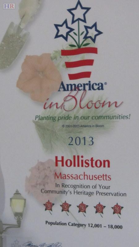 Congratulations to the entire Holliston in Bloom Committee, in addition to Mark, Bobby and Pat: Mary Greendale, Kathy Shore, Nancy Saulnier, Bea Hait, Margie Cummins, Sheila Adams, Linda Ahronian, Tara Hathaway, Deborah Moore, Kathy Thomas, Kathy Doliner, and all the Volunteers who helped bring it together for Holliston.