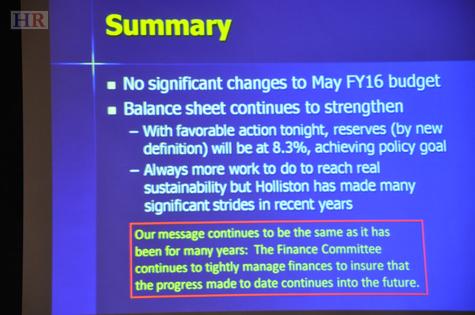 Thank you, Nancy (and the rest of the HR staff) for once again providing a summary of the Town Meeting. I could not make it due to a work commitment and this helped me stay informed.
