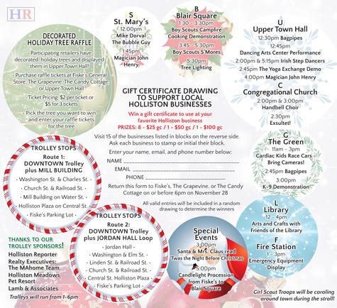 And let us not forget Holliston's Lions club will deliver again this year a holiday lighting display in time for the stroll ! Lion's club members volunteer there time every year on the Thanks giving holiday week end to make it happen for our town. If you see one please thank them !