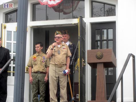 The parade itself culminated in a service that took place upon the steps of Town Hall. A large group of residents gathered solemnly to listen to a collection of speeches and pay their respects as the American flag was raised from half-mast to full and wreaths were placed on top of the veterans memorials.
