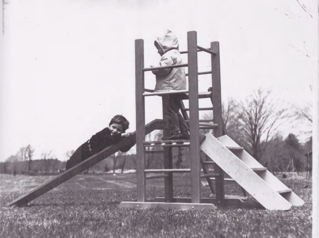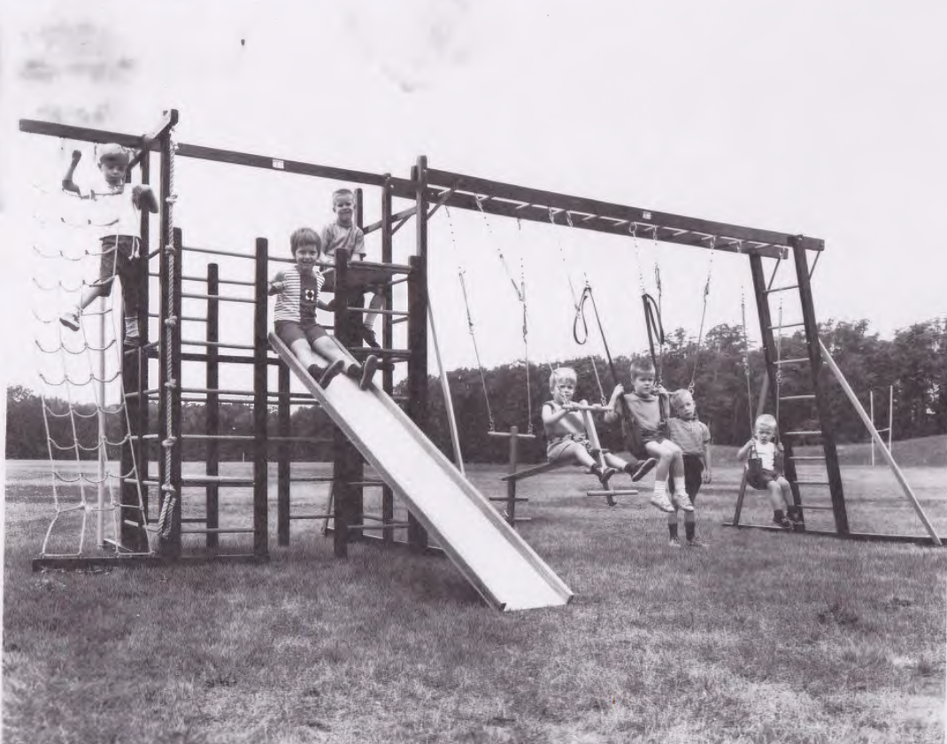 Following World War II, Childlife became a national leader in wooden jungle-end swing sets. As orders increased from schools and homes, construction was farmed out to other Holliston artisans, though the assembly continued in our own garage.