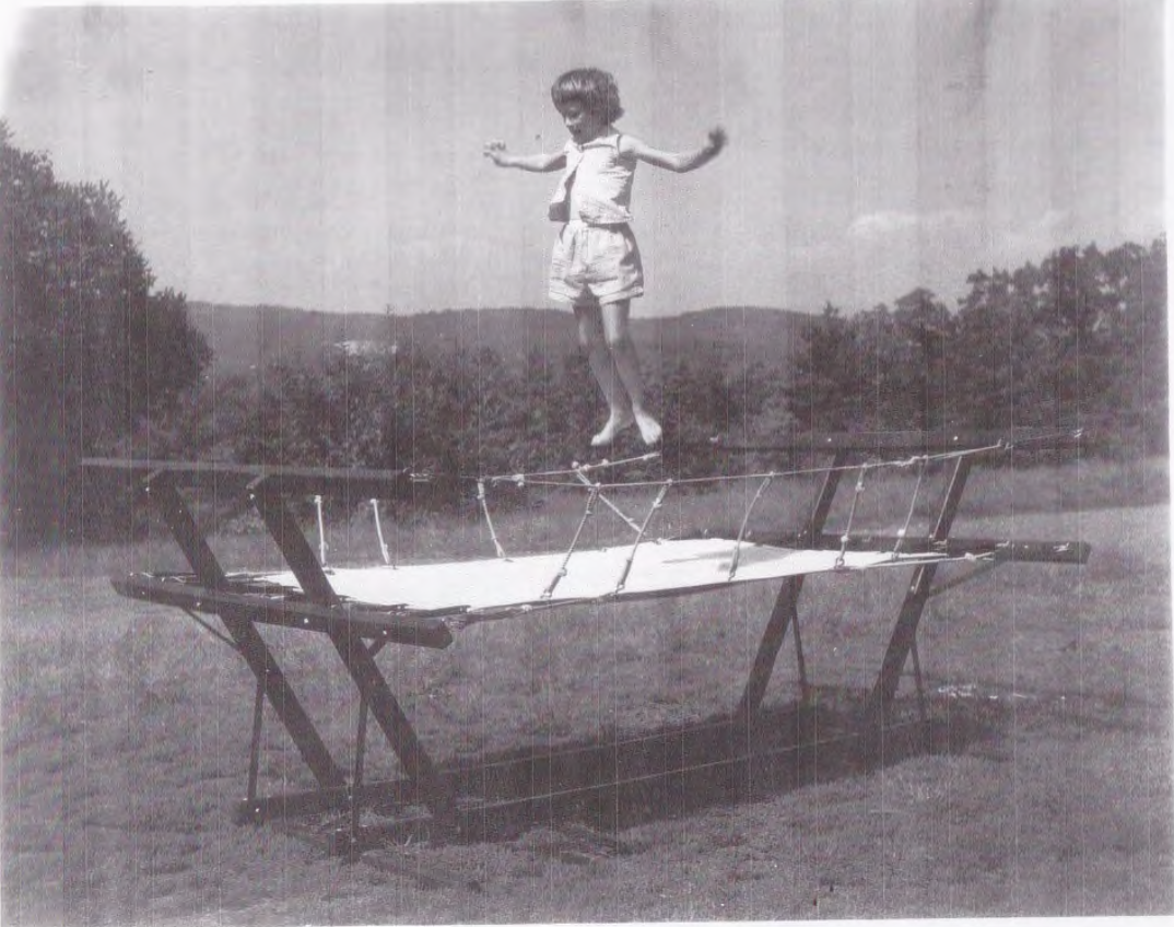 For years, my father did all the work himself; the design of the sets, their construction and painting, and the deliveries in and on top of his car. By this time, our family was living on Highland Street in Holliston, and our yard was full of new playthings, such as a rocking boat, a space trolley (a ride on a wire from tree to tree), a trampoline, and hollow blocks big enough to build a pretend house. Childlife was never just a business. Arnold White believed in his product as one that promoted healthy play of many kinds.