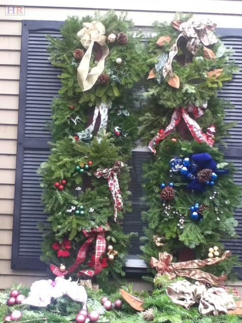 The club purchased 40 wreaths from cub scout pack 47 which were decorated with beautiful hand-tied bows and embellished with decorations to create lovely, custom wreaths.