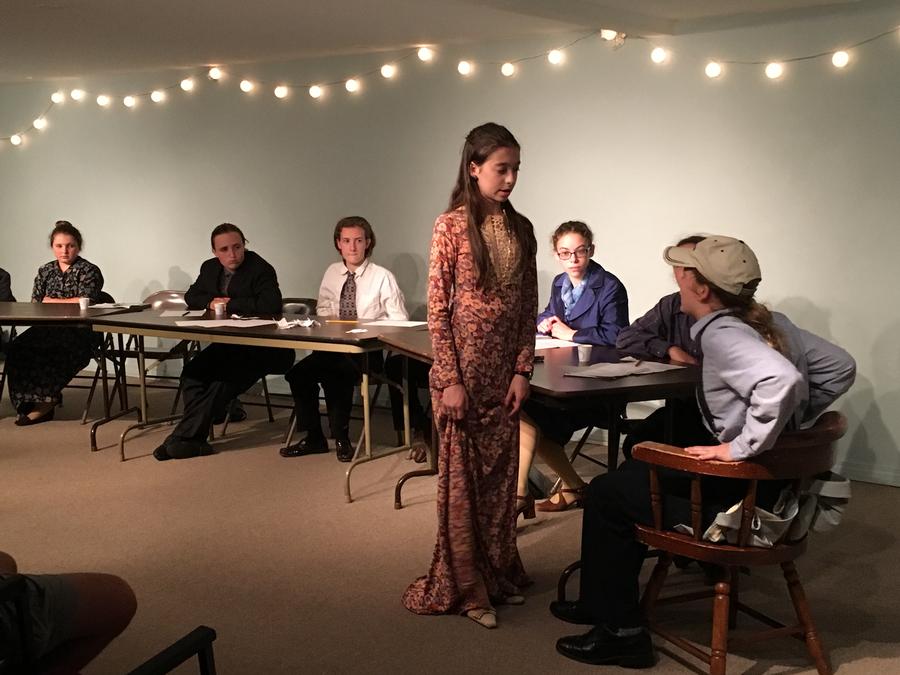 Friday afternoon I had the pleasure of watching a dress rehearsal for Twelve Angry Men. For those not acquainted with the story, it was immortalized in a black and white film starring Henry Fonda and Lee J. Cobb in 1957. In an era when only men were called for jury duty, a murder trial is conducted for a sixteen year old boy brought up in the slums who is charged with killing his father. His life is then in the hands of these “Twelve Angry Men.” Here instead were ten jurors, played amazingly well by students going into sixth, seventh and eighth grade. Roberta Weiner, director of Prana Productions, rewrote the play to include female characters, to accommodate ten actors and actresses, and to pare down the play to an hour. It succeeded famously.