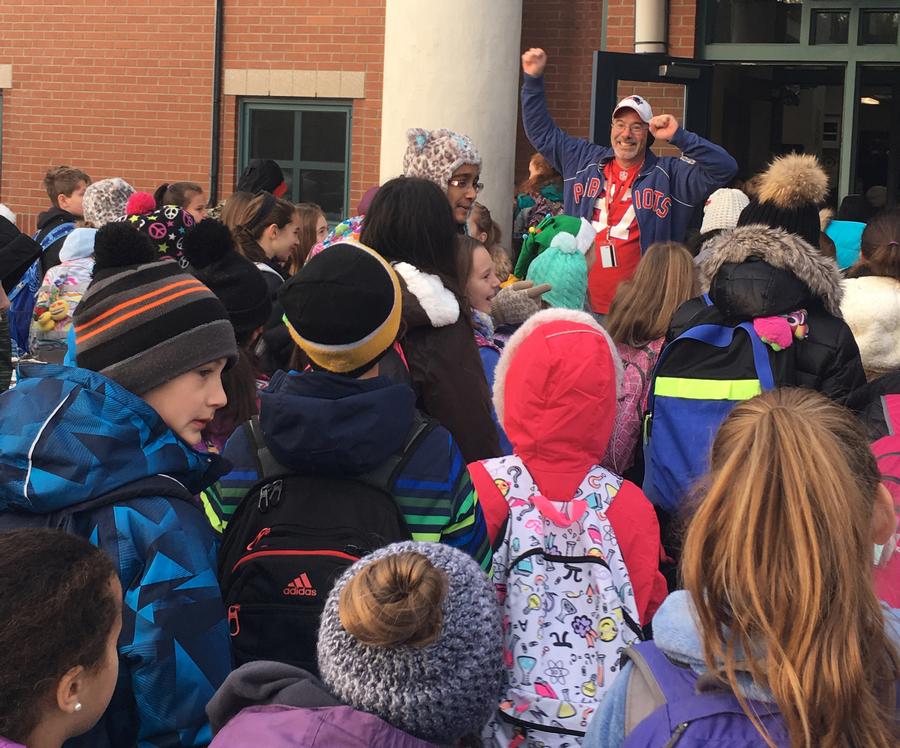 On Friday morning, Miller students braved the cold to greet Mr. Keim for a Friday Morning Dance Party- Patriots edition to celebrate another successful food drive!