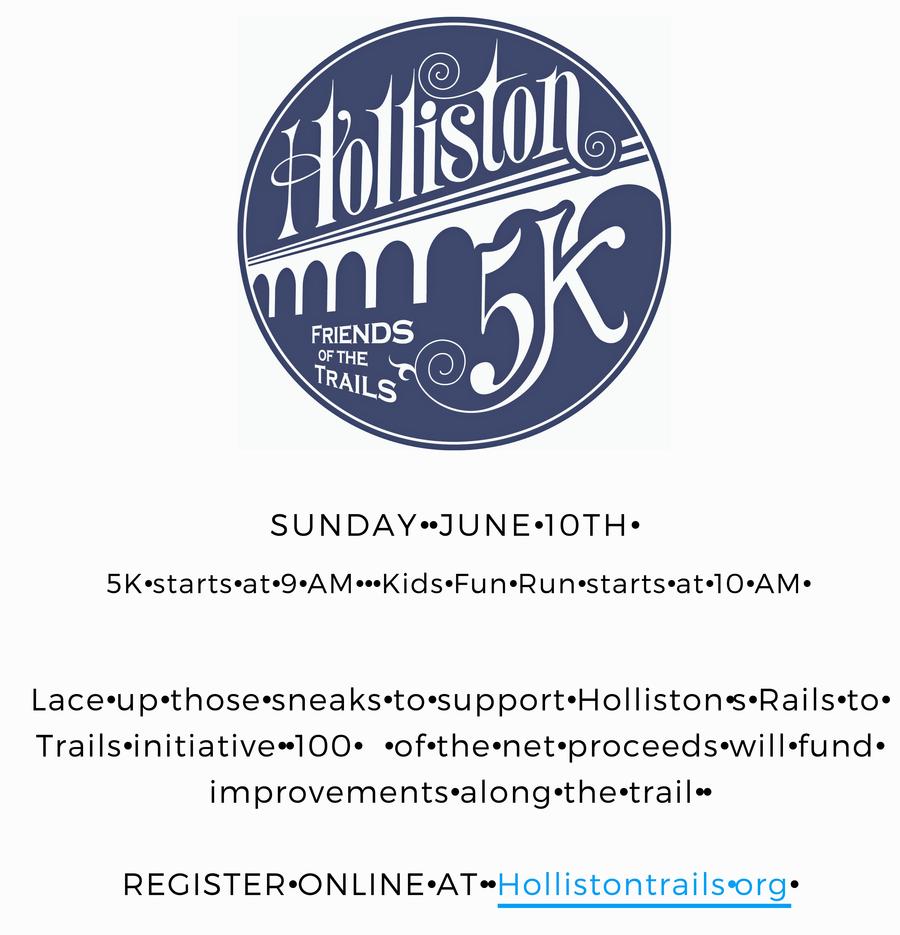 To Register: https://www.racemenu.com/events/155559-Friends-of-Holliston-Trails-5K-and-Kids-Fun-Run or HollistonTrails.org