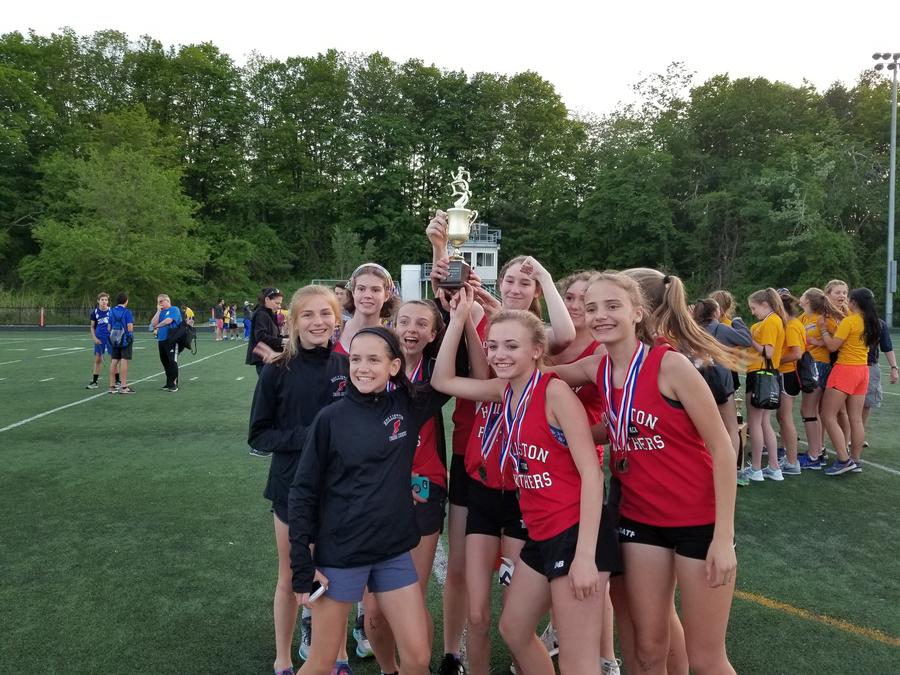The Adams Middle School girls track team just wrapped up another fantastically successful season, winning their 3rd Division 2 State Championship in a row on Saturday 6/2 at Clinton HS. The girls had by far the largest and most difficult division to compete in yet came out victorious beating Groton-Dunstable who was 2nd, 72-64.5, beating 38 other schools in the process.