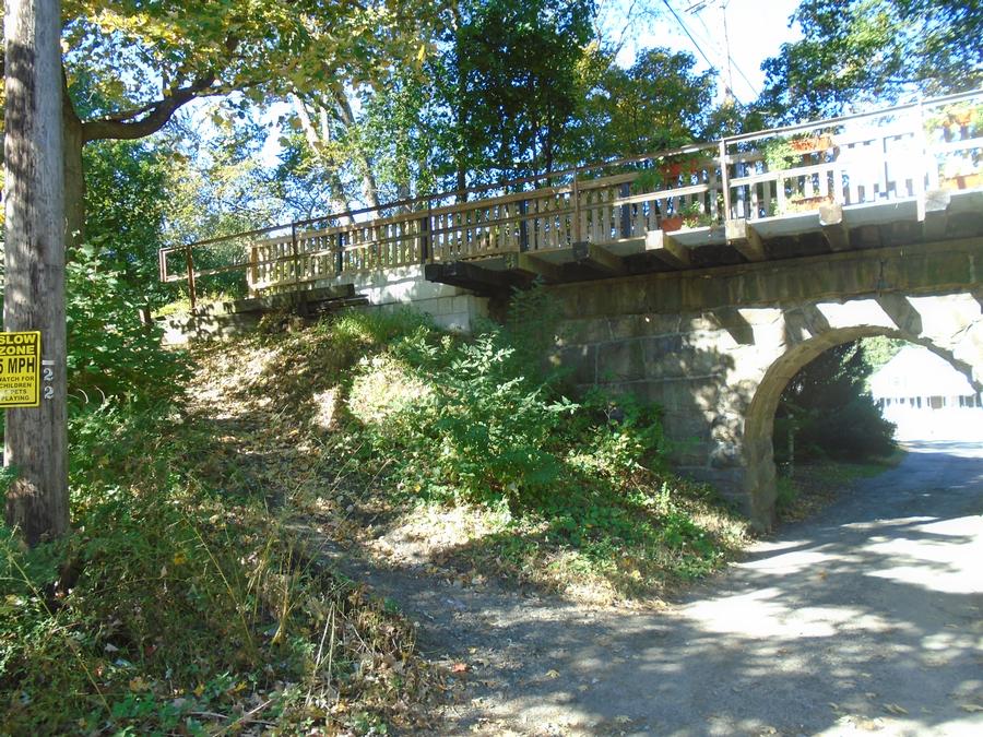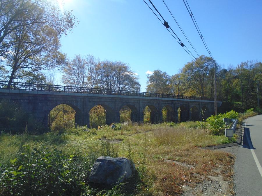 The Bogastow Brook Viaduct renovation is very impressive, and Holliston deserves to feel proud of this accomplishment. We recommend devising a long-term project to create an excellent Historic Roadside Stop highlighting the railroad, the bridge, the history of the pond (it already has a small historic marker). There is ample space for parking, covered kiosk for history presentation, and with repairs/reinforcing and safety railing of the wood bridge on the 8-arch bridge side, public recreation/picnicking. The pond side offers its own historic/storm water educational opportunities, plus wildlife.