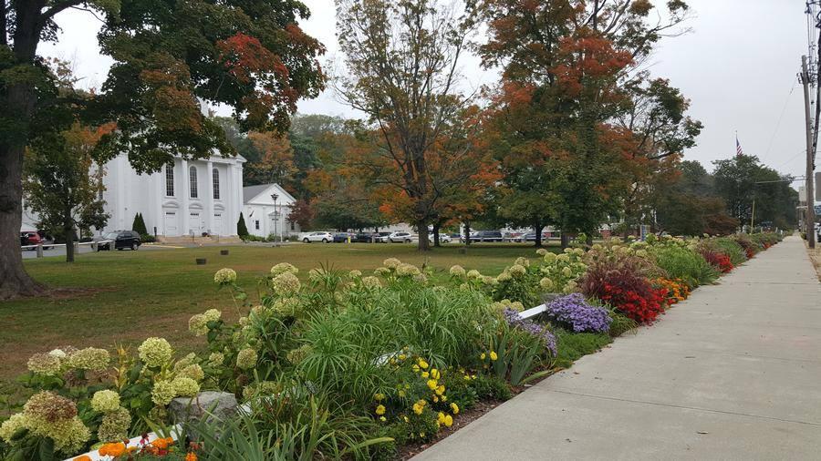 The Big Border in Holliston along Washington Street is filled with a glorious explosion of color! The landscaping border is a delight to see along the downtown street. The expansion of the 50 new hydrangea plants has really added dimension and drama to this landscaping bed. Congratulations on the completion of such a successful project. We loved the color blocking and we recommend that the color blocking be extended up and down the street to include the landscape area in front of the Church all the way over to beds in front of the cemetery. The turf area on the left corner of the church yard needed irrigation. The grass was dead in that area. The corner there seems bare. The judges recommend adding a corner landscaping bed of boxwoods to add green color to that area year-round Church Yard area that needs irrigation Joyful Manifestation comes to mind when one thinks about the community of Holliston. This community has figured out how to work together for the positive benefit of everyone.