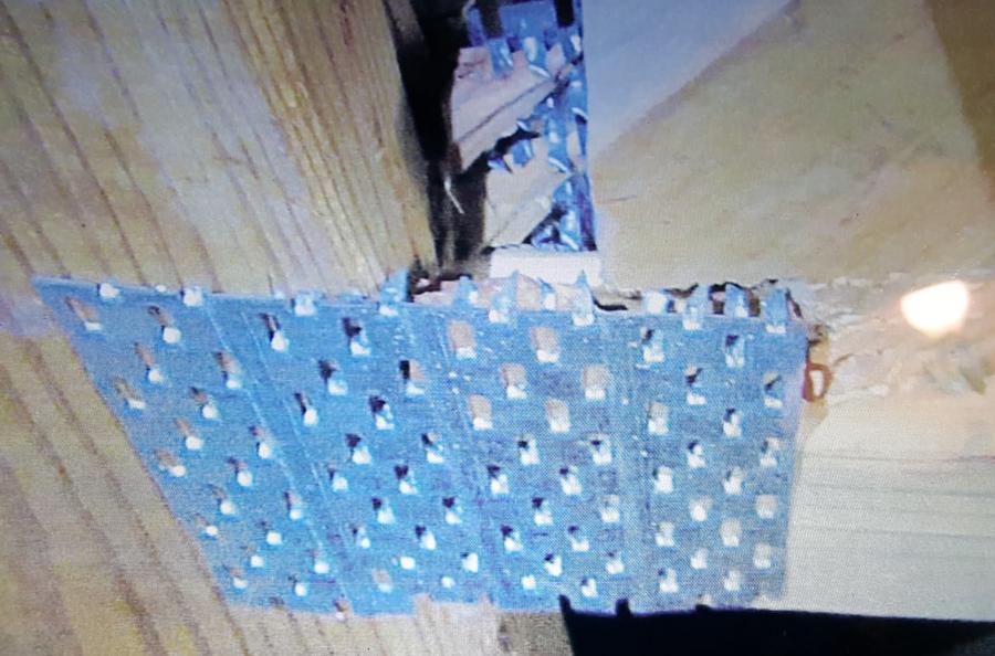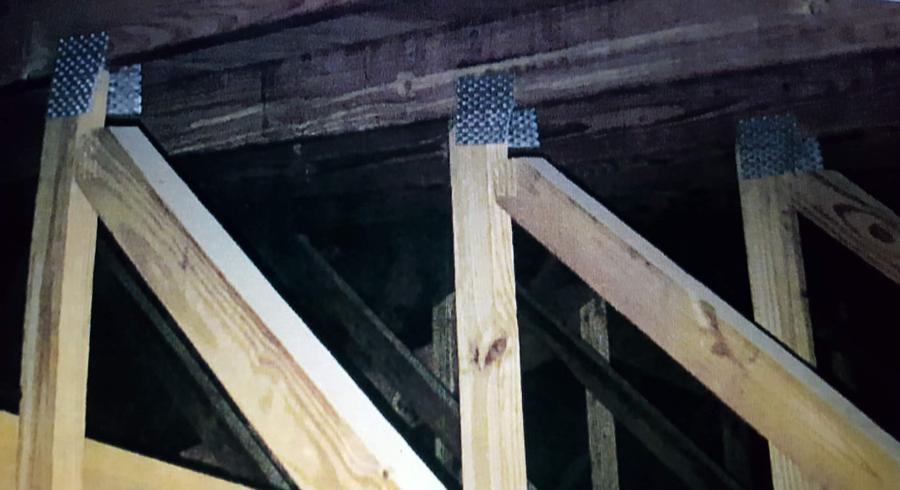 plates apart, gradually over three to five years. Then the roofing job created motion on the roof and created new kind of movement. But the engineers had examined the problem area before doing roof and there was no visible problem at the time – and they were climbing over trusses.