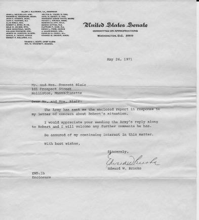 Great article Mrs. Greendale. Thank you for your service to both our country as well as the town of Holliston, Bobby. Nice to see a letter gets a response like that. Sadly, the town of Holliston and the state of Massachusetts have not been so well represented in politics since the spring of '71. I can still picture the Brooks and Losch signs in my parents front yard