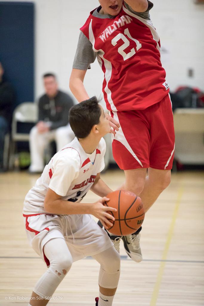 The Holliston 8th grade boys D3 basketball team participated in the featured match-up from a full slate of games for Holliston Youth Basketball's travel teams at the Adams Middle School gym on Sunday. Holliston faced off against Waltham and earned a hard fought 49-41 victory in a contest that was close throughout. Strong performances from Andrei Koev (11) and Owen McCarron (41) and a stellar team-wide defensive effort were among the keys to victory as the Panthers celebrated their second league win of the young season.
