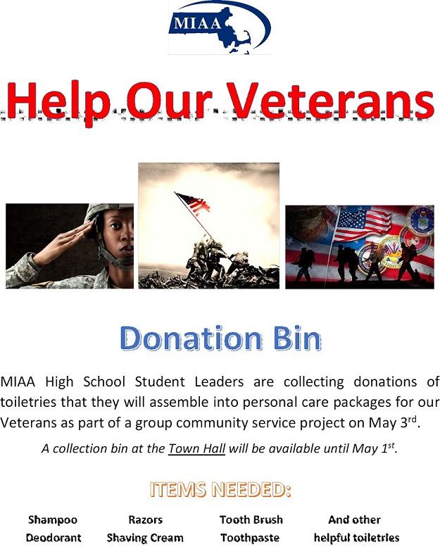 On May 3rd, our goal is to incorporate a “Service Hour” where the students will organize all the donations and then assemble care packages to be distributed to our Veterans in need. They will also be writing “Thank You” letters to our Veterans. This idea was created by the MIAA Student Advisory Committee.