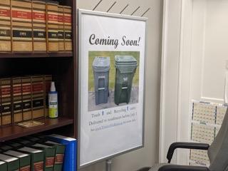 A poster depicting the new trash and recycling carts to be distributed to residents.