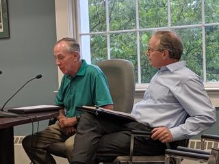 Robert Weidknecht (right) and Ken Henderson (left) talk to the Board.