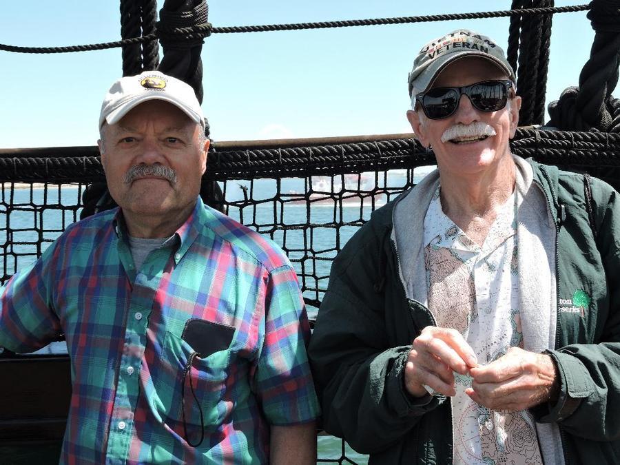 Rich Finn (on the right above) said he has sailed on some New England schooners over the years, but those excursions paled in comparison to this experience, which turned out to be an historical event: the Navy had invited Natick Soldiers Systems Center (NSSC) commanding officer Brig. Gen. Vincent Malone and soldiers from Natick Labs, all in full uniform, making this, as noted by the Natick Labs website, “the first-ever, Army/Navy underway cruise in Boston Harbor.”