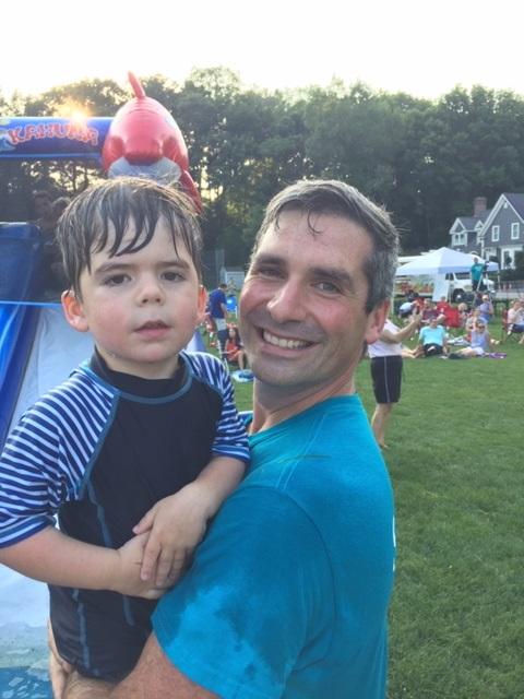 Making sure that everyone was safe in the water were Mark Frank, Park and Rec Director and his son Teddy. Clearly Mark was located in the splash zone as he was soaked from head to foot.