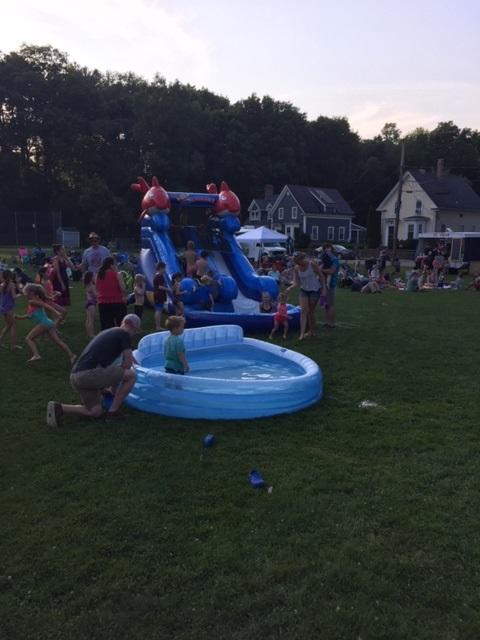 Josh and his crew were slightly upstaged by the main attraction - cool refreshing water - and lots of it! Because of the hot weather predicted, the Park and Rec Department provided a water slide and splashing pool. The line for the slide was long and orderly throughout the evening.