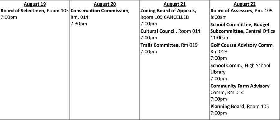 Looks like the Town Boards and Committees are getting back from Summer hiatus.