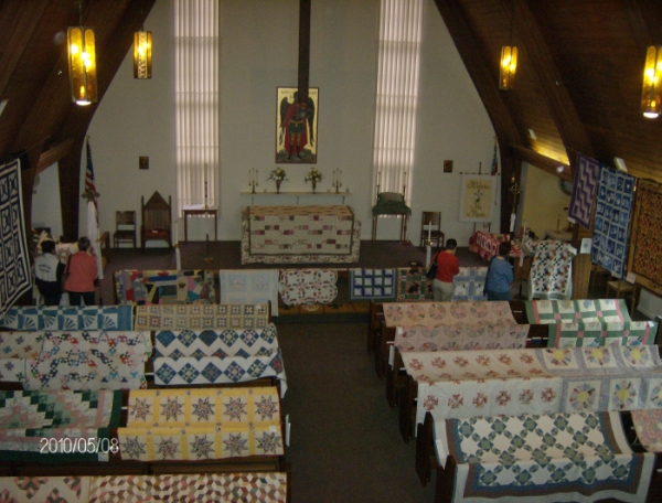I displayed a quilt made by my grandmother that was stuffed with my grandfather's woolen army blanket from World War I. All proceeds were donated to charity. Half went to St. Michael's outreach programs, and half went to Haitian relief.