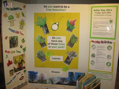 Exhibits in the adult library include a poem called Trees and other books that help with the identification of trees in your neighborhood, school or your own back yard.