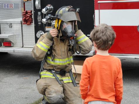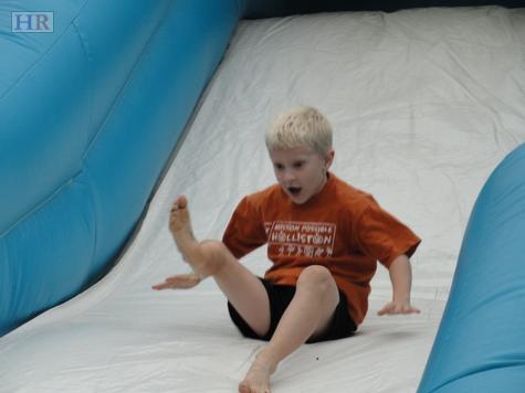But in the fun of the day tinged with an air of serious care for the town, the children are entertained in many ways -- playing on the inflatables, doing creative activities, crawling on vehicles, just spending the day with relatives who do not have to shell out theme-park prices.