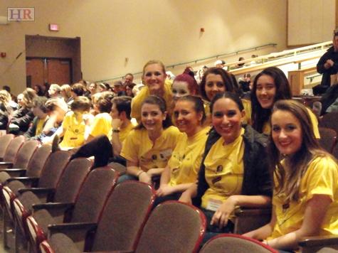 As in any competition, there are rules and judges. Timers are very important. Each play must take no longer than forty minutes – a beginning, middle and end in forty minutes. Each team begins with an empty stage and must set up its entire staging in five minutes with the timer calling out elapsed time up to the deadline. At the end of the play, another five minutes is allotted for striking the set and leaving the stage empty and clean. These phases of the performance are done within sight of the audience – no curtain is used. Before the next play, the previous cast changes into jeans and a special tee shirt in their school color, entering the auditorium together to a standing ovation.