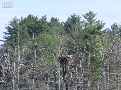 (Note the osprey sitting next to the nest which contains two young birds.)