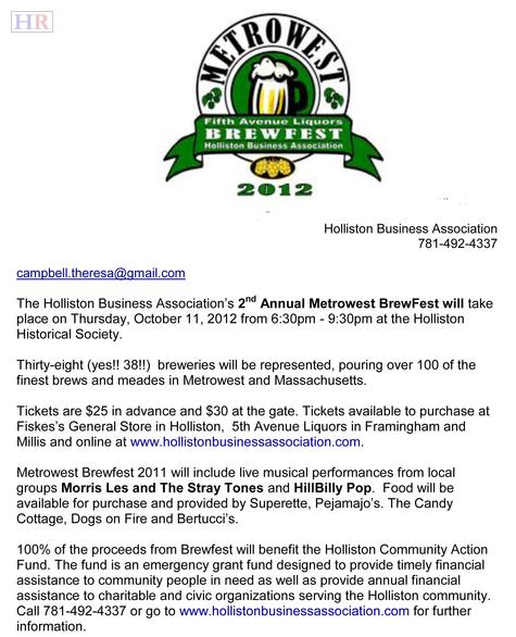 I would like to give Theresa Campbell a big congratulation on a job well done for her coordination and running of the 2nd Annual Metrowest Brew-Fest. It was nice to see once again this was such a huge success. Well Theresa it's time to relax. Tonight you were definitely the MVP on the HBA team.