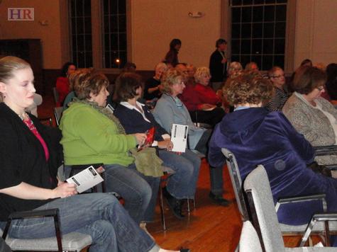 In the upper town hall, Hank Phillippi Ryan served not only as guest speaker, but also as hostess. She greeted every person in the audience individually as each was seated.