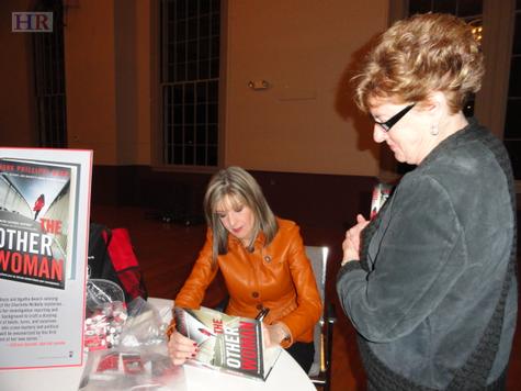 What a delightful evening we had. The group clustered around the autograph table talked informally with Hank and she liked having her picture taken with each. We discovered a lovely, warm enthusiastic lady, not just the serious person that graces our tv screen. I plan to begin reading my autographed copy today. Thanks to the Friends of the Library for the program.