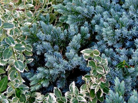 Evergreen trees and shrubs provide textures with their leaves and needles, and planting evergreens with contrasting textures creates interesting compositions. The large smooth leaves of a rhododendron can be set off with the ferny foliage of Siberian cypress and the fine texture of a boxwood. The soft long needles of an Austrian pine look great next to the shiny, spiky leaves of a blue holly.