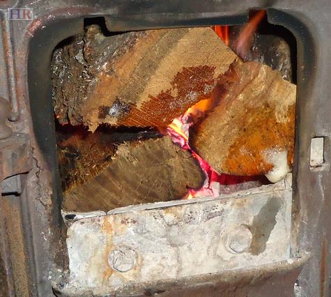 In the picture below, I show a piece of “seasoned” wood being kindled, as the fire starts. The foam is water bubbling out of the wood. This is March, and the "dry" wood in that picture was delivered last August. The wood was stacked in August, has been covered since October (wood is best left open and to the sun until wet weather exceeds the drying effect of sun and breeze after rain). The water in that fire will be converted to steam, and will go up the chimney. There, it will consolidate the creosote already in the chimney, making the chimney harder to clean. In addition, the wood energy that should be used to heat the stove is wasted drying wood instead of heating.