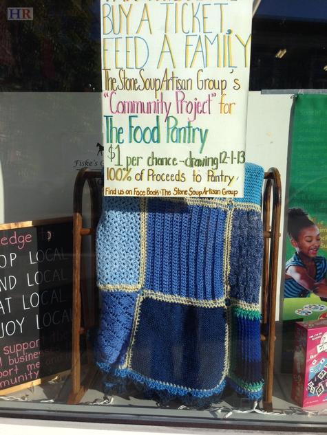 Also being sold are tickets to win a beautiful blanket in a drawing to benefit the Holliston Pantry Shelf. The blanket is currently displayed in Fiske's General Store window, but will be moved across the street at 783 Washington Street by the Holiday Stroll. Tickets may also be purchased at Fiske's General Store and Kamala Boutique for $1.00 per ticket until December 1st. 100% of the proceeds go to the Holliston Pantry Shelf. Thank you to the Stone Soup Artisan Group!