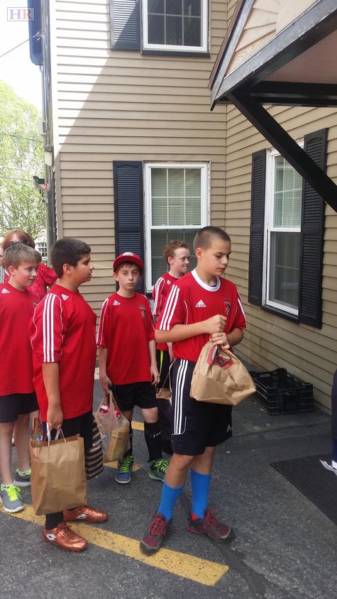 The Leedlelers are: Zack Andrew, Zack Armes, Ty Bergstrom, Justin Cole, Trevor Fleischman, Will Howes, RJ Hunt, Michael Liberty, Jack Littlejohn, Kells McAuliffe, Will Morelli, Matthew Perera and Danny Stokes. George Andrew and Mark Liberty also help coach the team. Morelli reports that the Holliston Youth Soccer Association is looking to expand the “Larger Game” program to other teams beginning in the fall. “I mean, look at what this one team was able to do. Imagine two teams, three teams… six teams all collecting for the pantry,” Morelli says. “We could have an amazingly huge impact.”