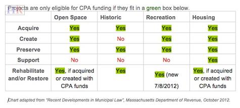 The Community Preservation Act was passed by the Massachusetts Legislature in 2000 for the purpose of helping communities preserve open space, develop outdoor recreational facilities, create affordable housing and preserve historic resources.