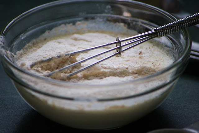 In a small bowl, whisk together 1/4 c milk with the sahlab; set aside.