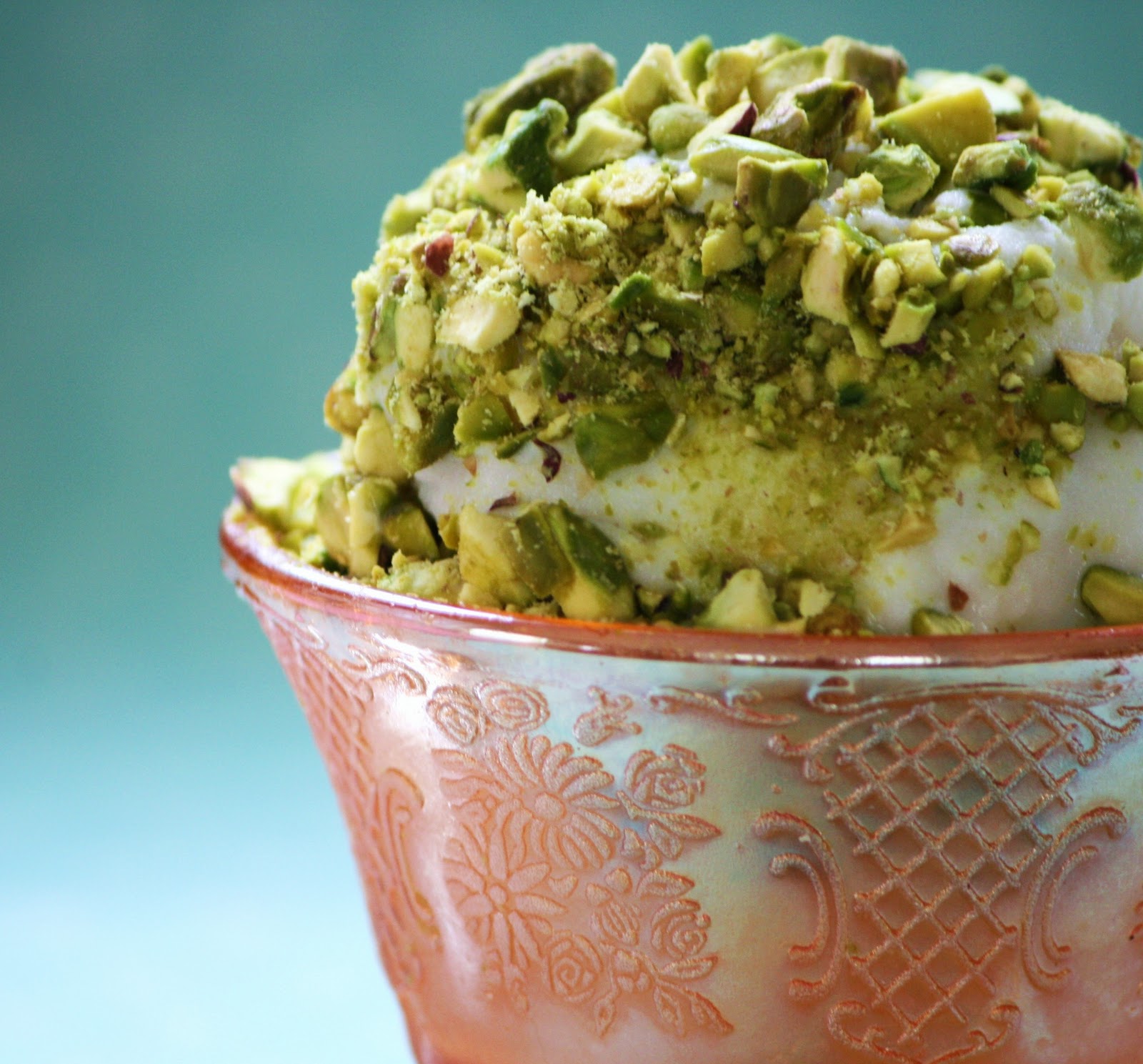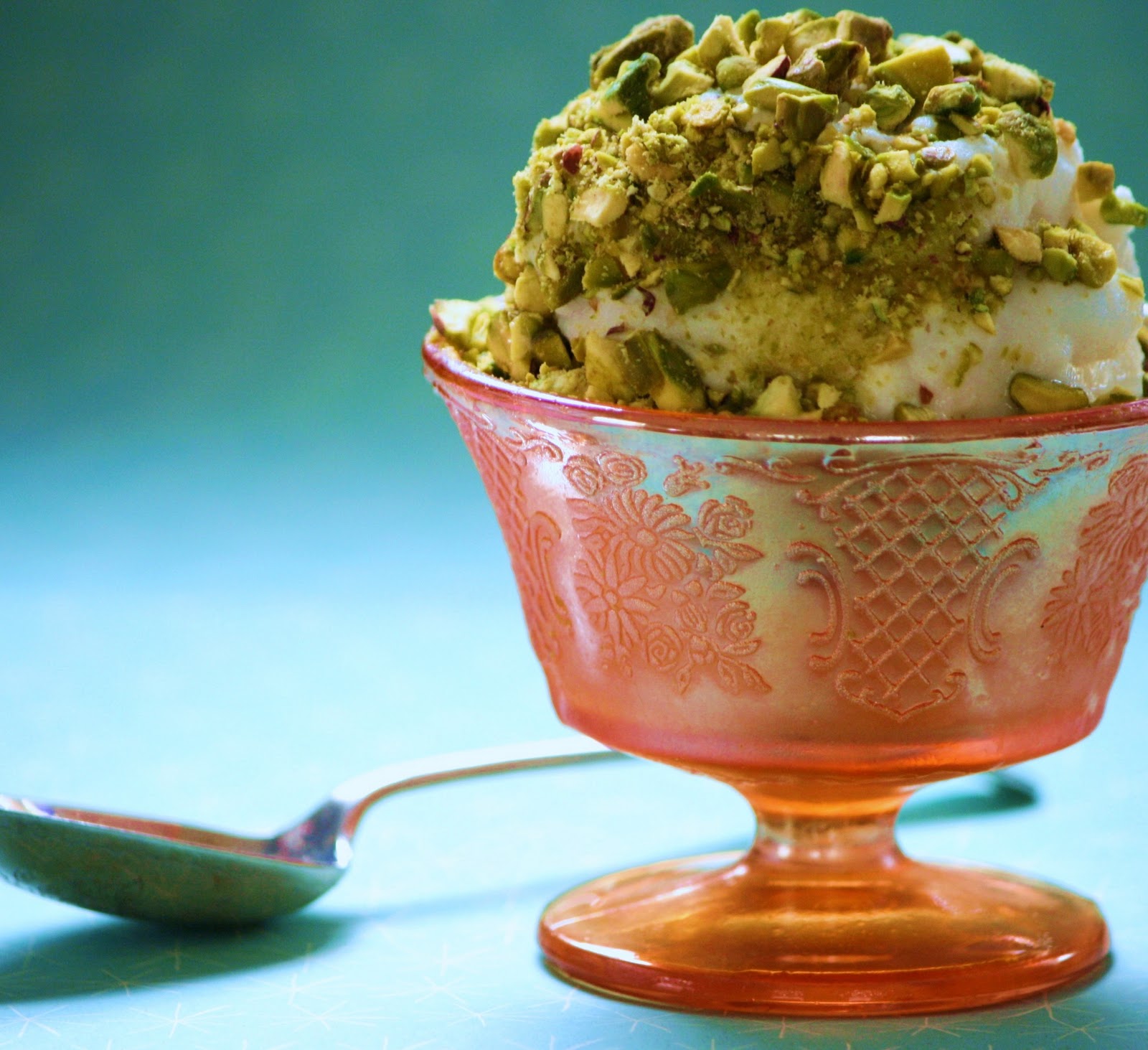 Agriculture in Syria includes wheat, barley, cotton , lentils, chickpeas, olives, sugarbeets, fruits, nuts, vegetables, beef, mutton, eggs, poultry and dairy. Aleppian culinary influences, along with Arab, Persian and Turkish traditions make for a wonderful variety of dishes such as humus, tabbouleh, fattoush, labneh, shawarma, mujaddara, and meze to name just a few. Middle Eastern food is without a doubt on my top five list of favorite foods - and now this ice cream...well, read on.