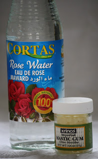 Rose Water - Scents the custard with a delicate, exotic aroma. I dabbed a little behind my ear because really, what's better than smelling like a sweet rose? Mastic Gum thickens the custard, but also lends a very subtle pine pitch flavor and scent, like pine nuts; Finally, Salep flavors and thickens the ice cream custard with a lovely vanilla and cinnamon taste.