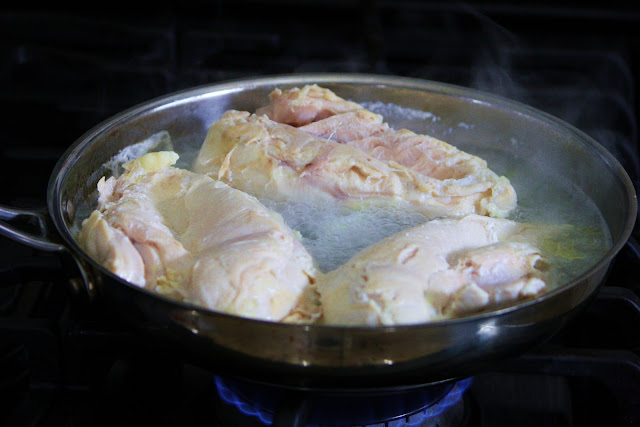1. Boil 1/2" of water in pan. Add chicken, cover, and steam 12-15 minutes.