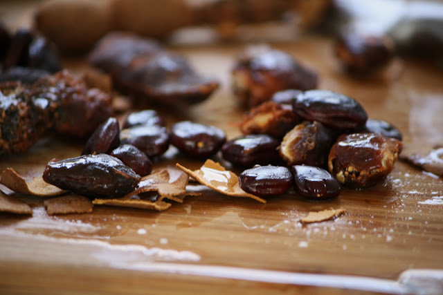 Tamarind for Eric's Hot Sauce - these are tricky and sticky to work with, but delicious