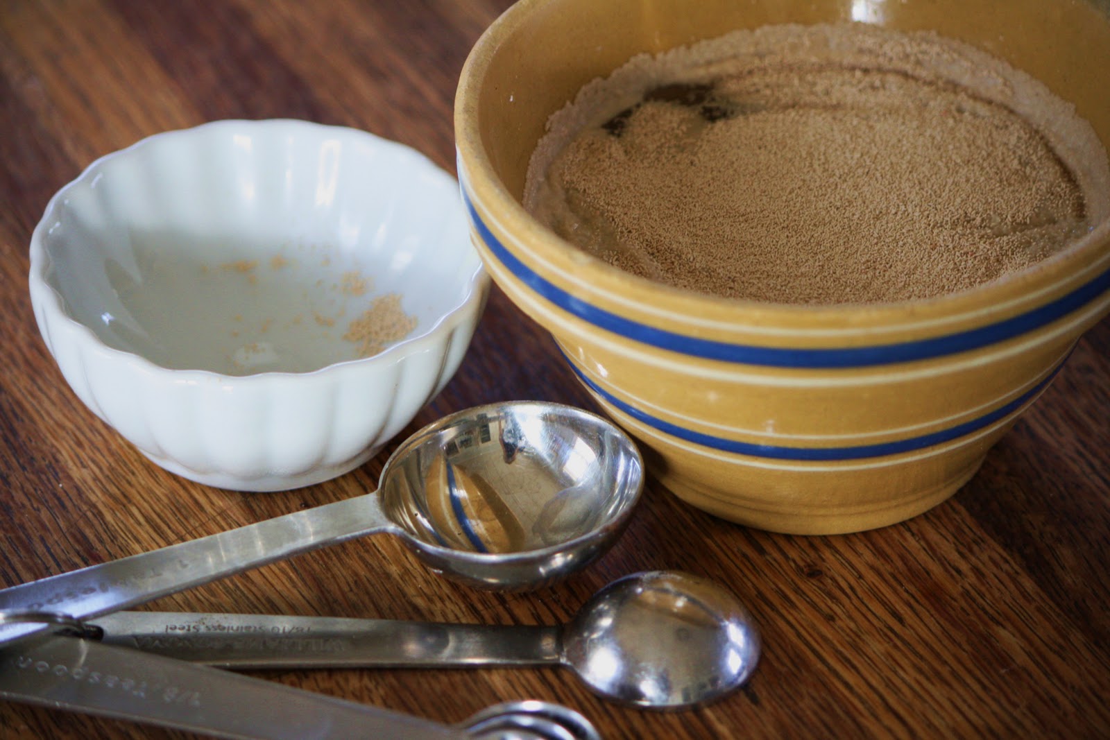 - Put 1 cup of lukewarm water in a small bowl, add sugar and sprinkle with yeast. Then leave mixture until it swells to twice its size.