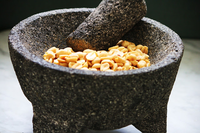 I ground unsalted peanuts - you can use natural peanut butter as well