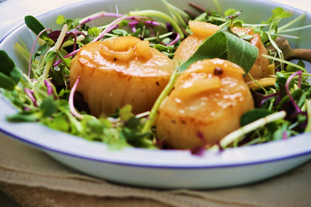 Seared Scallops with Cider Brown Butter (Adapted from Wampanoag Tribe Cookbook)