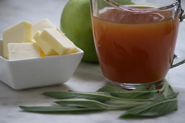Cider, a Granny Smith apple, sage and butter for the sauce